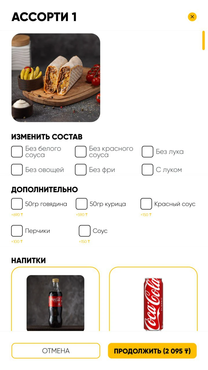 - Настраивает заказ: добавляет модификаторы и дополнительные ингредиенты.