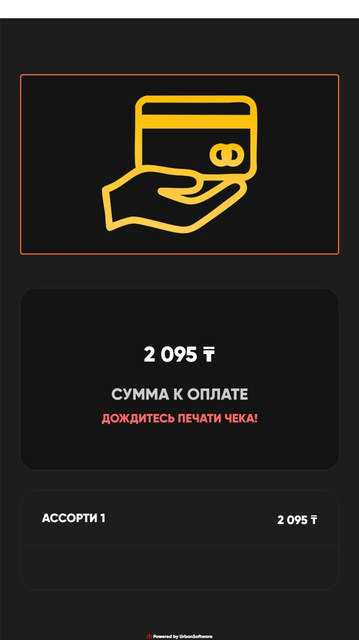 Терминал и его брендирование были выполнены компанией ITB-трейд. Форм-фактор решения типичен для ресторанов самообслуживания: большой широкоформатный яркий монитор, принтер чеков, площадка для POS-терминала. Эквайринг организован с помощью Smart POS от Kaspi. Это позволяет принимать оплату как физическими банковскими картами, так и с помощью QR-кодов, что особенно удобно для современных клиентов, привыкших к быстрым и бесконтактным платежам.